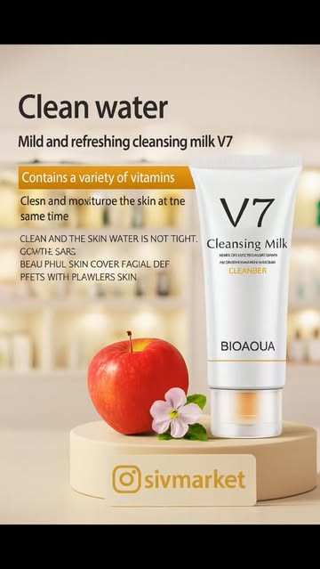 پوستت رو با ویتامینها بیدار کن! V7 Cleansing Milk از برند BIOAQUA با ترکیب ، پاککنندگی ملایم و آبرسانی همزمان پوستی روشن، لطیف و بینقص رو تجربه کن — درست مثل ویترین ما همراه با رایحهی سیب و شکوفههای طبیعی موجود در sivmarket ویترین ما رو ببین و عاشقش شو! برای دیدن بیشتر، روی لوگوی طلایی ما کلیک کن پوستشفاف