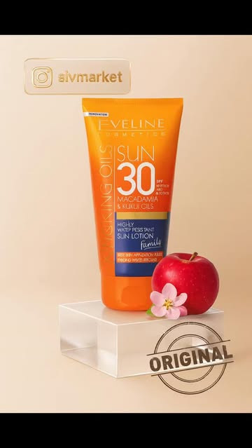 محافظت بینظیر، زیبایی بیپایان با ضدآفتاب خانواده Eveline Cosmetics مدل SUN 30 SPF، پوستت رو در برابر آفتاب بسپار به ترکیبی از قدرت و لطافت. حاوی روغنهای ماکادمیا و کوکوی – تغذیه و رطوبترسانی عمیق مقاوم در برابر آب – مناسب برای تمام اعضای خانواده SPF 30 – محافظت مؤثر در برابر اشعههای UVA/UVB ORIGINAL تضمین اصالت محصول موجود در فروشگاه SivMarket طراحی سهبعدی خاص با استند شیشهای، سیب سرخ و شکوفههای لطیف – ترکیبی از طبیعت و زیبایی لوگوی طلایی روی استند، نشاندهنده خاص بودن انتخاب شما برای مستقیم، بده یا از لینک بیو استفاده کن ضدآفتاب